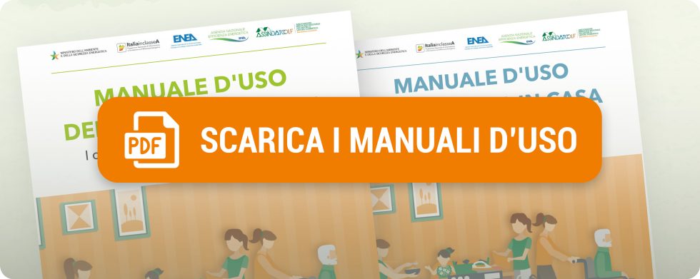 Se vuoi scoprire altri consigli per ridurre i costi e risparmiare sulle bollette o approfondire gli argomenti che abbiamo trattato, scarica il Manuale d’uso dell’energia in casa Verde – Consigli per il risparmio energetico senza affrontare spese e il Manuale d’uso dell’energia in casa Blu – Consigli per il risparmio energetico con piccole spese.